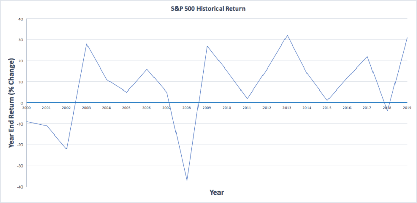 Remember too, that the shorter the time frame, the greater the volatility. Take a look at how the value of the S&P 500 has changed since 2000: